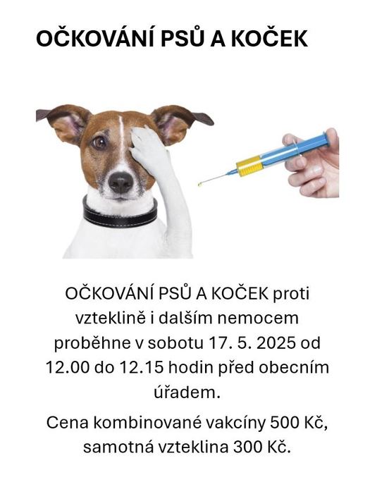 Úvod > Aktuality > Očkování psů a koček 17.5.2025